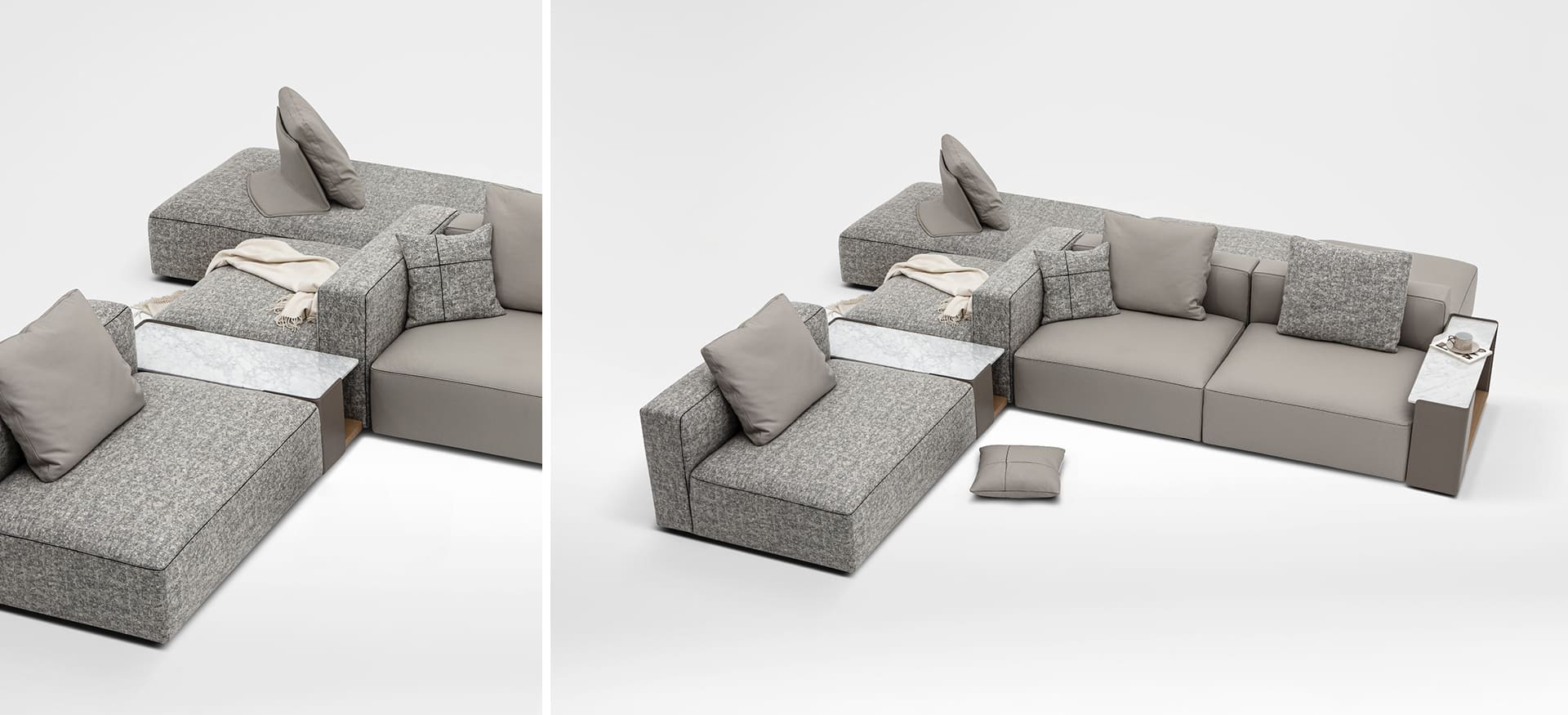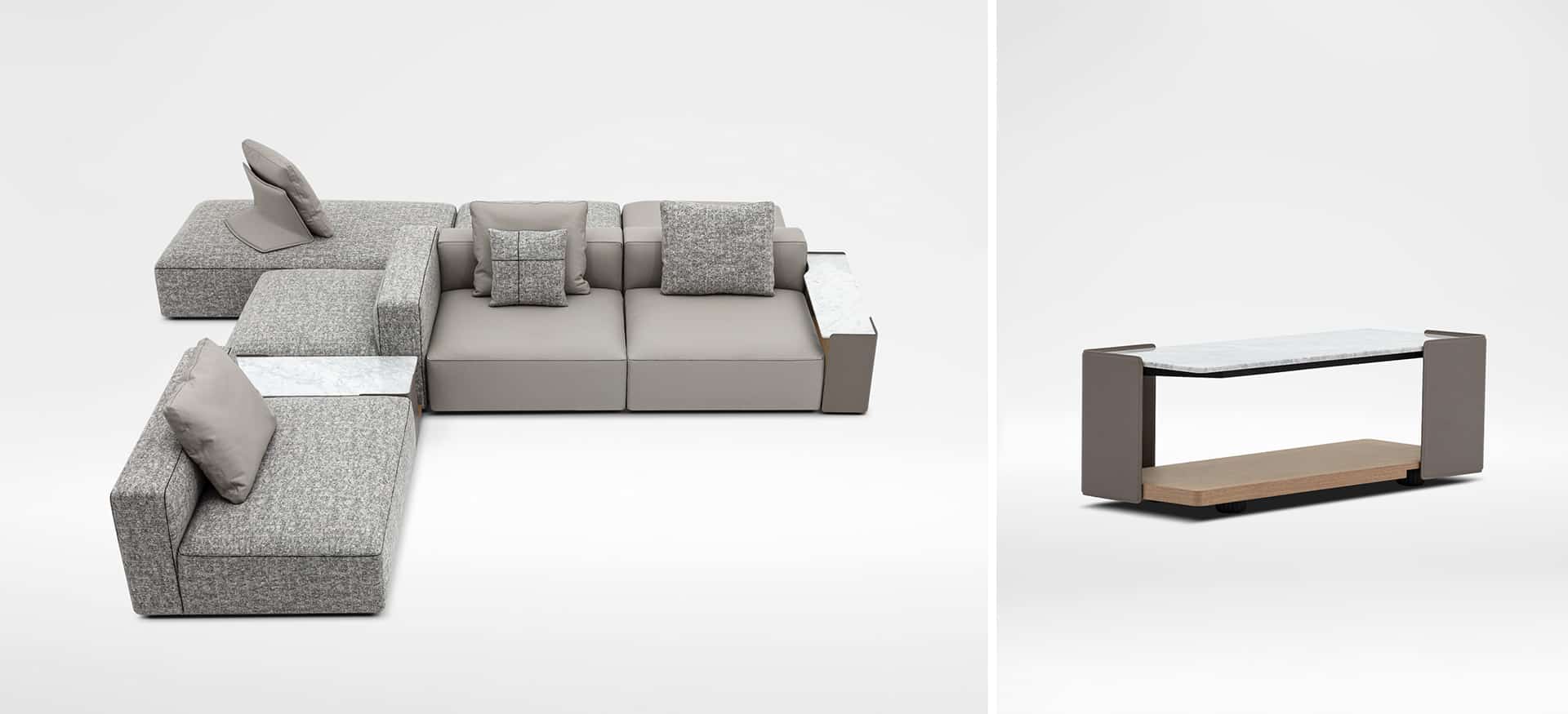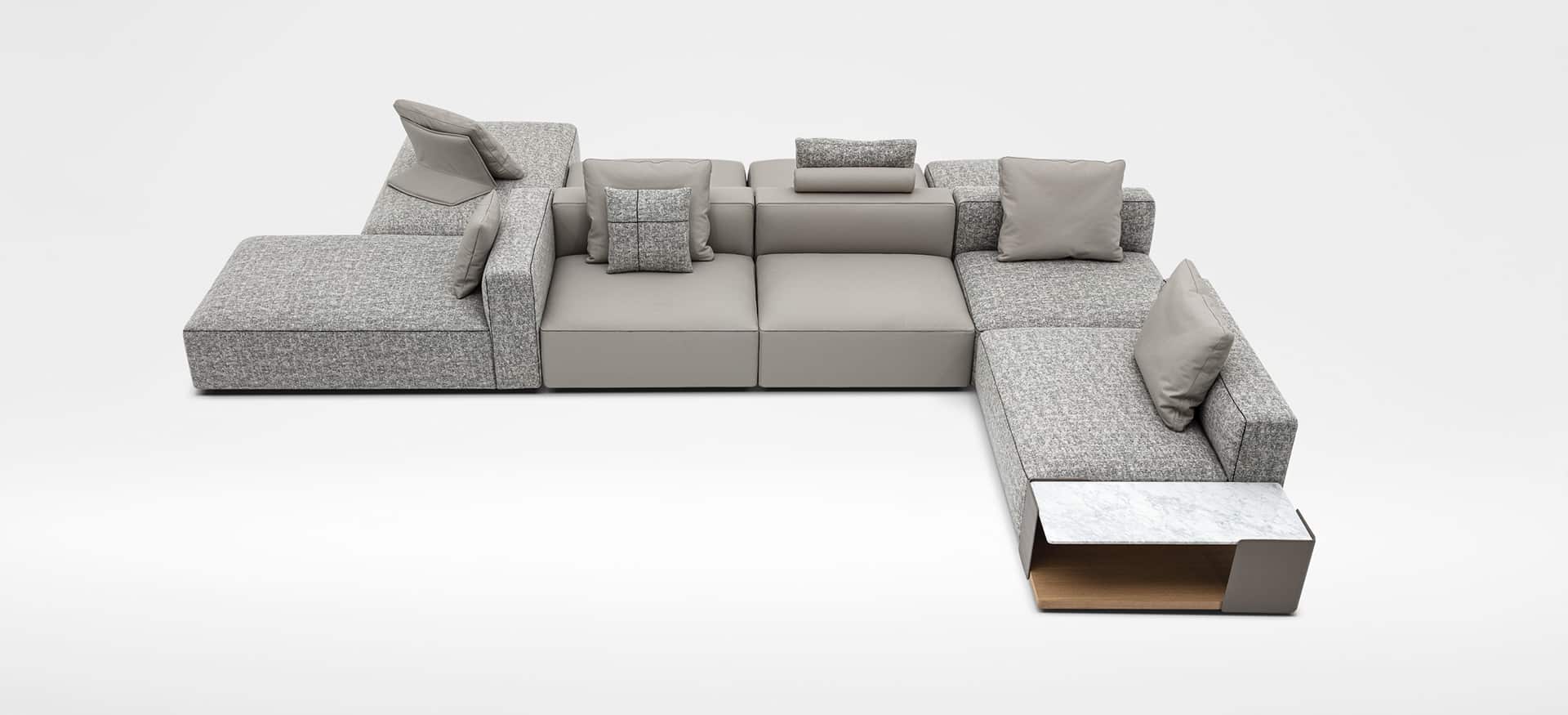 The newly redesigned Rubix Series is the perfect example of modern, modular design with endless configurations to suit your needs. With careful attention to detail such as the inlaid black piping that frames the clean edges of each Rubix Sofa and optional marble armrests, this collection stands out from the typical boxy sectional. Expertly crafted from solid birch, the Rubix Sofa boasts a tight fitted seat design composed of cross woven elastic webbing and high resilient polyurethane foam topped with feather down to provide comfort to this flexible, sleek design. Tailored to your preferences with the ability to choose from various fabric or leather upholsteries, this sectional also features large removable ottomans that can be converted into additional seating with the optional freestanding backrest.